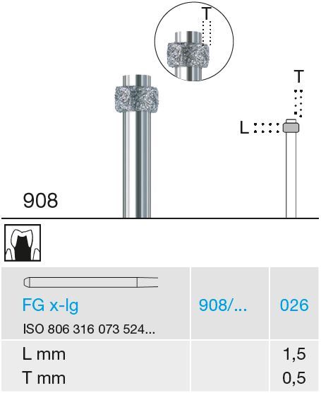 Busch high speed diamond depth marker. Length of diamond:1.5mm and width of diamond: 0.5mm. Price per pack of 5.