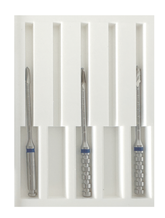 RootEX® instruments is a new and patented system that makes possible to remove root fragments safely, quickly and without any additional surgical intervention. 2 Step system is a Drill and then Extract: Step 1 - Drill