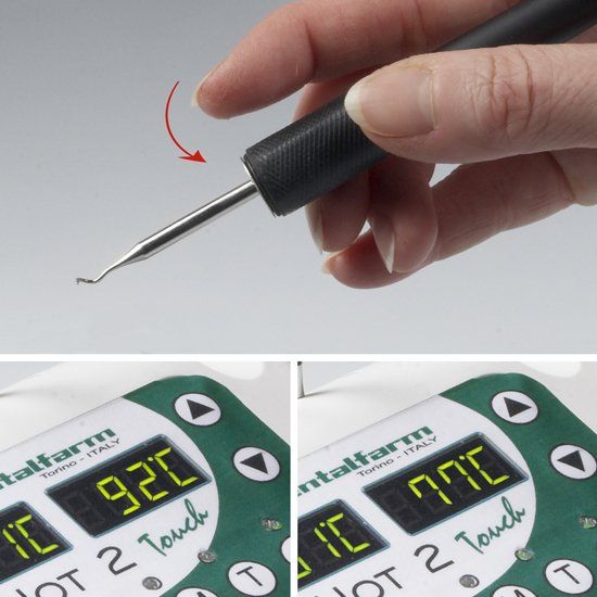 Ability to switch instantly from the wax pick up temperature to the modelling temperature, simply touching the sensor ideally located on the handpiece end