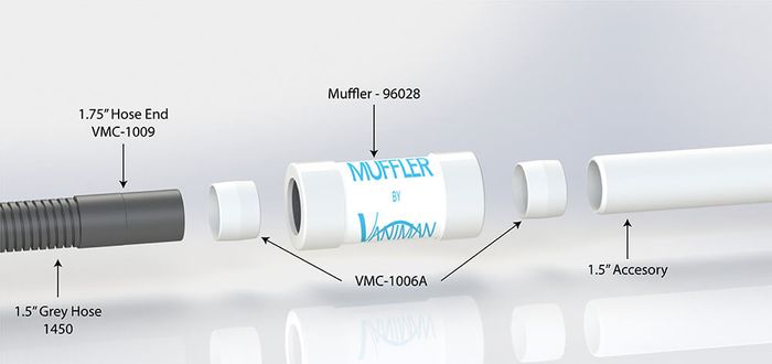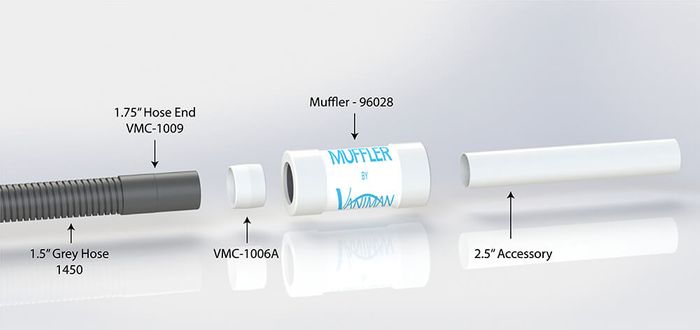 The Muffler dramatically decreases the air noise caused by air being sucked into the point of collection on workstation attachments and accessories. Installed in-line with existing suction hoses, it is ideally placed immediately after the accessory or attachment. Foam dampening material restricts air friction noises, dramatically lowering noise pollution caused during suction operation. Can be used with any system.
