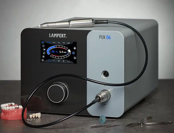 The New PUK D6, the dental welder, is compact and versatile, designed specifically for dental applications and alloys. All welding tasks in the daily routine of a dental laboratory, which could otherwise only be performed with a laser can be performed with this dental welding unit.
