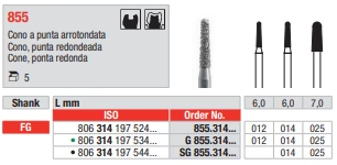 - Edenta FG Round End Tapered Diamond 855/025 X-Cour