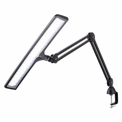 Ideal to use on any work space, cutting table, drafting table or desk, the Lumi is a professional workstation lamp that will enable you to see fine details and true colors. The large shade can be smoothly adjusted vertically, horizontally and laterally to any desired position. The dimmable light allows easy adjustment when less light is required.