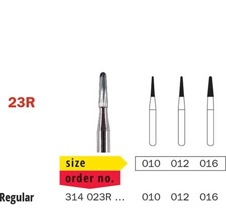 High speed round end taper fissure tungsten carbide 23R. Price per pack of 5.
