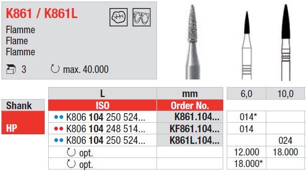 K-Diamond is ideal for preparation of zirconia, lithium disilicate and veneering porcelain due to the degree of diamond it can match that of the mardness of these ceramics. Price per pack of 3.
