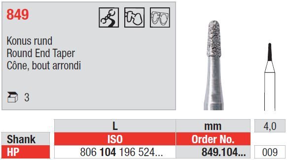 Round end taper shaped Electroplated Diamond burs for the straight handpiece. Price per pack of 3.