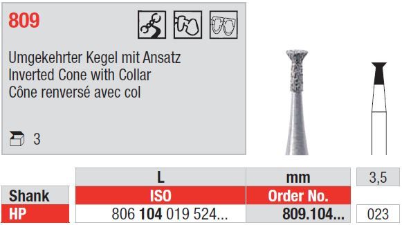 Inverted cone with collar shaped Electroplated Diamond burs for the straight handpiece. Price per pack of 3.