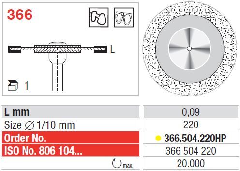 Shape 366 Ultra thin diamond disc with extra-fine diamond. 0.09mm thick. The edge is diamond double sided. Mounted. Ultra flexible