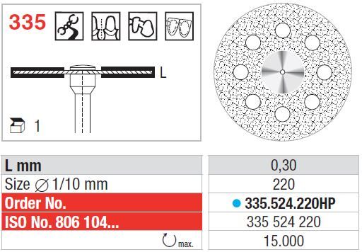 Shape 335 - Double sided perforated diamond disc in standard diamond grit for rough pre-cutting, separating and contouring of ceramics. Mounted.